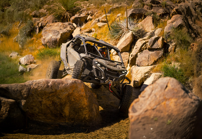O Can-Am Maverick R Xrc 2026 é uma máquina verdadeiramente diferenciada: sua estabilidade em terrenos difíceis pode ser comprovada facilmente. Projetado para terrenos difíceis como subir em rochas, a sofisticada suspensão aguenta o tranco, devolvendo conforto e dirigibilidade mesmo em condições intensas de pilotagem.